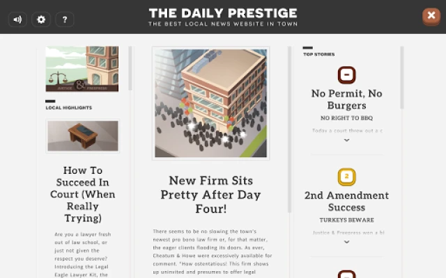 Dalam "Do I Have A Right?", setiap kemenangan kasus tidak hanya berarti keadilan bagi klien, tetapi juga pertumbuhan signifikan bagi firma hukum Anda. Dengan membela hak-hak konstitusional klien secara efektif, Anda akan membuka berbagai keuntungan menarik, mulai dari merekrut lebih banyak pengacara untuk mengelola beban kasus yang meningkat, mendapatkan mesin kopi untuk meningkatkan produktivitas tim, memperbarui ruang tunggu agar klien lebih nyaman, hingga meluncurkan iklan untuk menarik lebih banyak klien ke kantor Anda. Melalui pengalaman ini, pemain akan belajar mengidentifikasi hak-hak yang dijamin oleh Bill of Rights serta Amandemen ke-13, 14, 15, 19, dan 26, mengingat amandemen spesifik yang menjamin hak tertentu, dan mengenali keluhan yang tidak melibatkan hak konstitusional. Untuk para pengajar, sumber daya kelas tambahan untuk "Do I Have A Right?" tersedia di www.icivics.org. Dapatkan juga Poin Dampak dan berbagai pencapaian dalam game dengan mendaftar akun iCivics Anda.