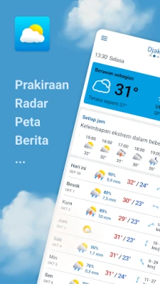 Meteored menghadirkan prakiraan cuaca paling akurat dan lengkap. Dapatkan informasi cuaca 14 hari, kondisi terkini, peringatan, radar hujan, suhu, kualitas udara, hingga serbuk sari. Antarmuka intuitif kami memudahkan Anda memeriksa setiap detail cuaca.
