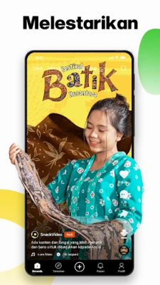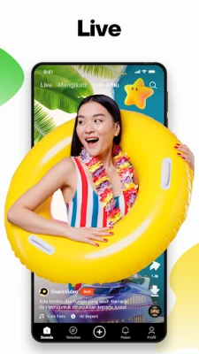 SnackVideo juga menjadi ruang bagi pertumbuhan pribadi dan ekspresi kreatif. Dapatkan pencerahan spiritual dengan mengikuti siaran langsung para Ustadz atau menyimak video ceramah singkat, menawarkan nasihat hidup yang menenangkan jiwa dan pengetahuan agama yang bermanfaat, termasuk acara khusus Ramadan. Bagikan momen keseharian Anda dengan mudah menggunakan beragam efek spesial dan templat foto berbasis AI yang inovatif, memungkinkan Anda menciptakan video yang unik dan menghibur bersama sahabat. Lebih jauh lagi, SnackVideo berkomitmen pada dampak sosial positif melalui berbagai kegiatan amal, seperti menyumbangkan buku dan fasilitas olahraga ke desa-desa, memberdayakan anak-anak untuk meraih cita-cita mereka. Mari bersama SnackVideo, kembangkan diri, berkarya, dan berikan kontribusi nyata bagi masyarakat.