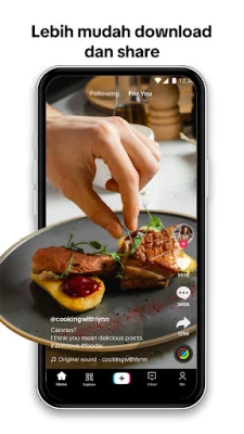 Selami lautan video yang dipersonalisasi, dari konten edukatif hingga hiburan paling viral, semuanya disajikan sesuai minat Anda. Nikmati tontonan bebas gangguan dengan fitur Clear Display yang menyembunyikan elemen layar, bagikan momen favorit dengan mudah hanya dengan sentuhan, atau simpan ke daftar Favorit untuk ditonton kembali kapan saja. Jangan hanya menjadi penonton, wujudkan kreativitas Anda! Abadikan dan edit momen spesial menggunakan koleksi efek, filter, dan musik terbaru yang intuitif. Fitur Duet memungkinkan Anda berinteraksi langsung dengan video lain, sementara penggunaan hashtag dan penandaan teman akan memperluas jangkauan kreasi Anda ke komunitas yang lebih luas.
